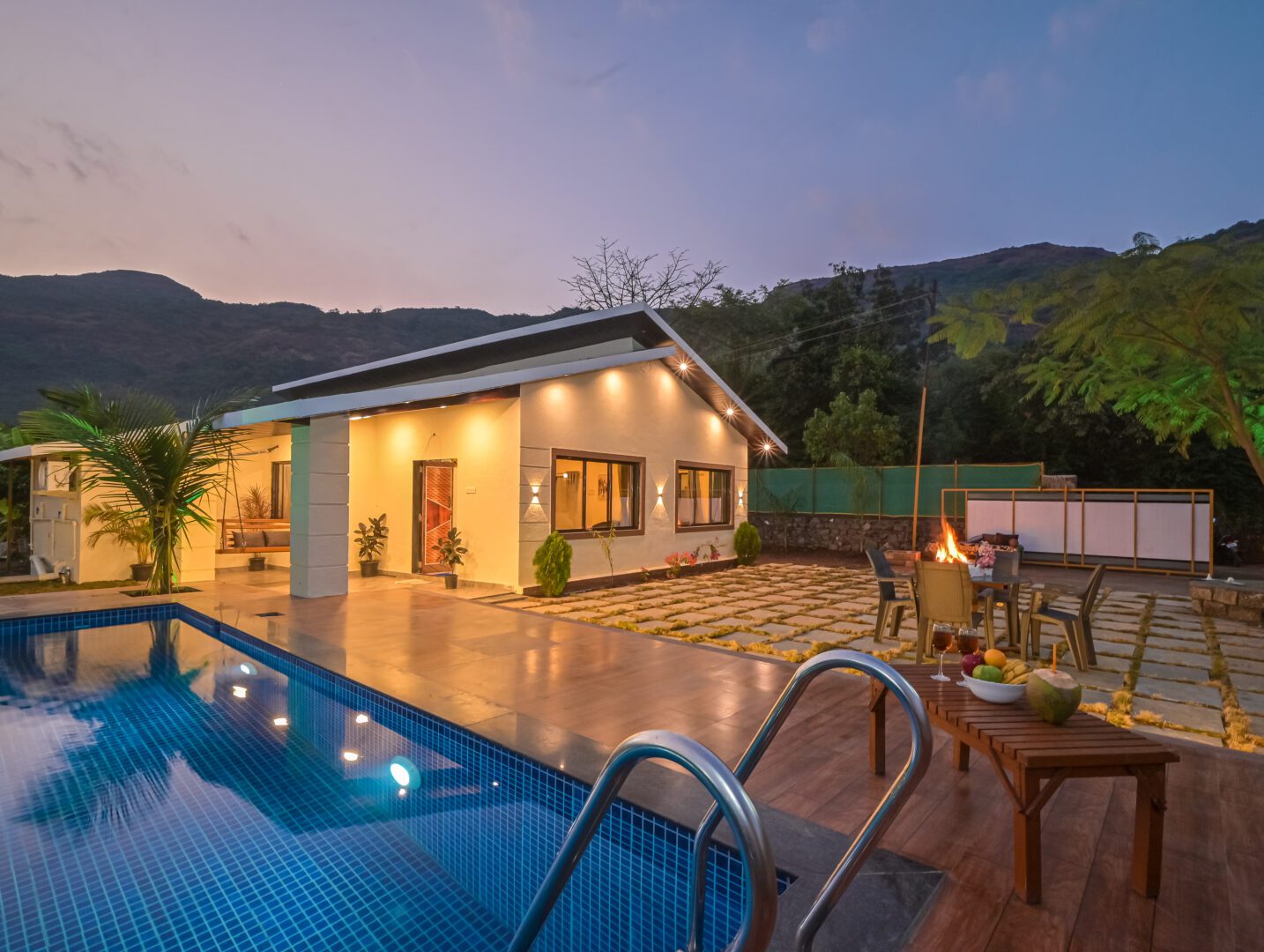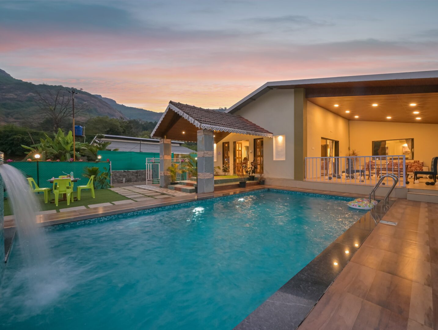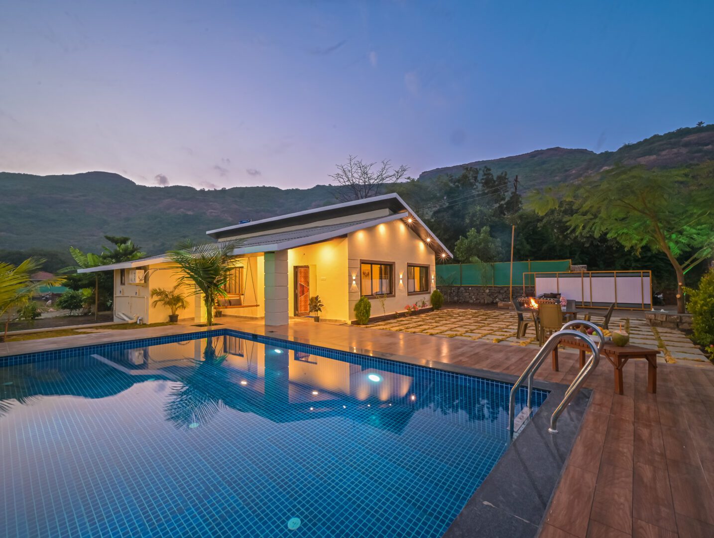 Escape to Amber Villa, a beautifully designed 3BHK private pool villa located near Visapur Fort, Malavali-Patan Road, Lonavala.