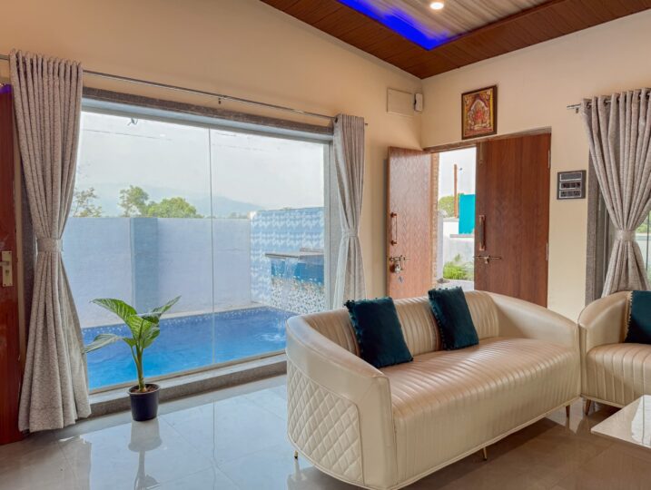 Escape to PremRang Villa, a cozy yet luxurious 2BHK retreat nestled in the peaceful surroundings of Karla, Lonavala. Designed for relaxation and fun, this villa is perfect for families, couples, and small groups, offering a private swimming pool, modern amenities, and a serene atmosphere for an unforgettable getaway.