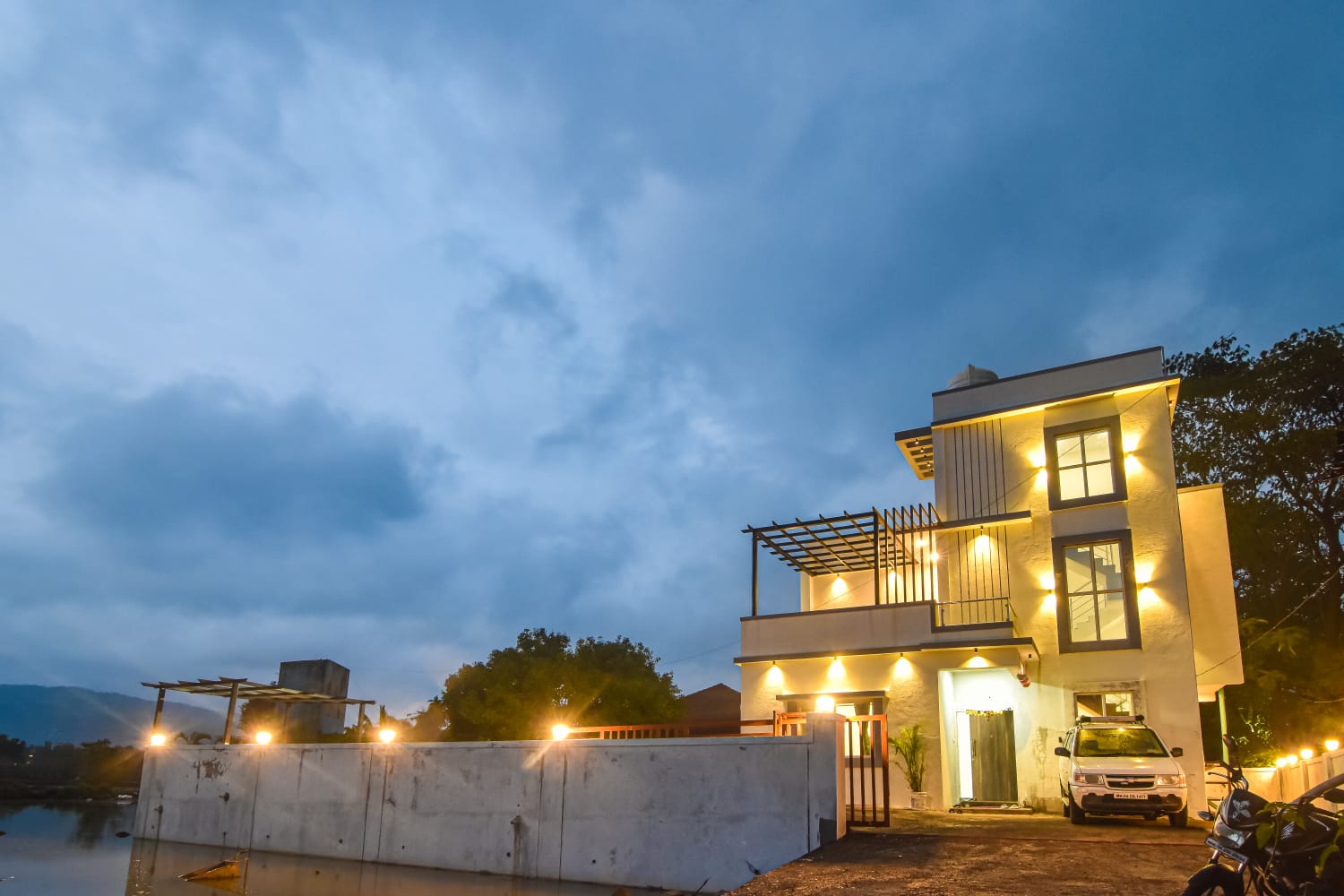 - Amenities: 3 Bedroom, 4 Bathrooms, Air conditioning, Balcony, Barbeque Grill, Dining area, Flat-screen TV, Free parking, Free WiFi, Games & Activities, Onsite Caretaker, Outdoor pool, Party Speaker, Pet friendly, Power Back-up, Refrigerator, Terrace, Wi-Fi