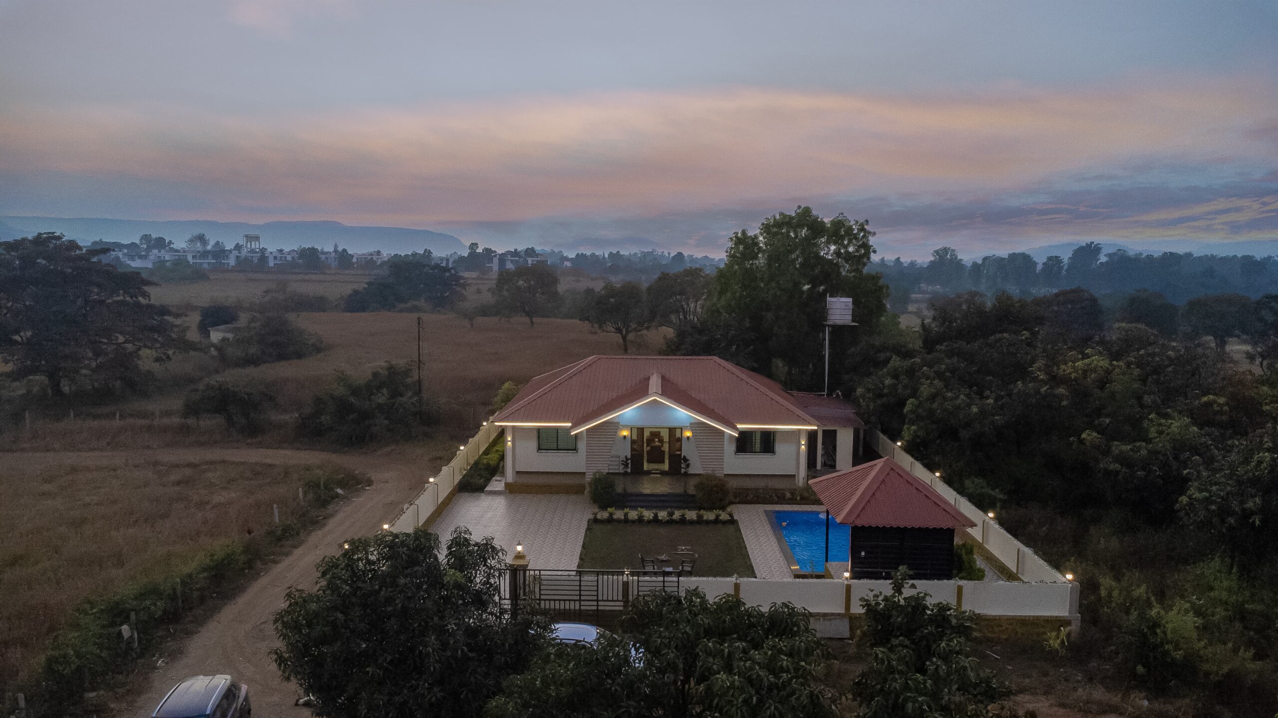 Welcome to Dreamfarm Villa, a charming 2BHK private pool villa nestled near Visapur Fort, Patan, Lonavala